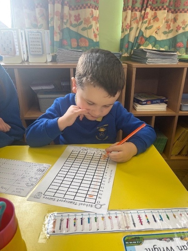 They carefully tallied up how many cars, bikes, vans, buses and other vehicles they seen before heading inside to display their findings on a bar chart and discuss their results.