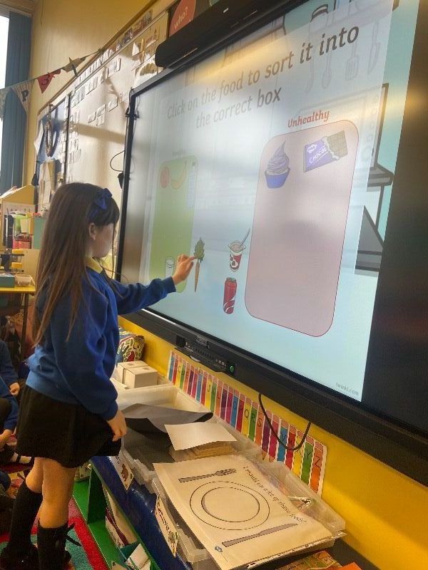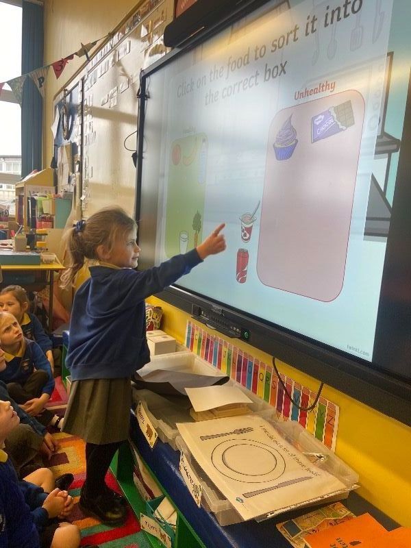 We used the interactive whiteboard to sort ‘healthy’ and ‘unhealthy’ foods.