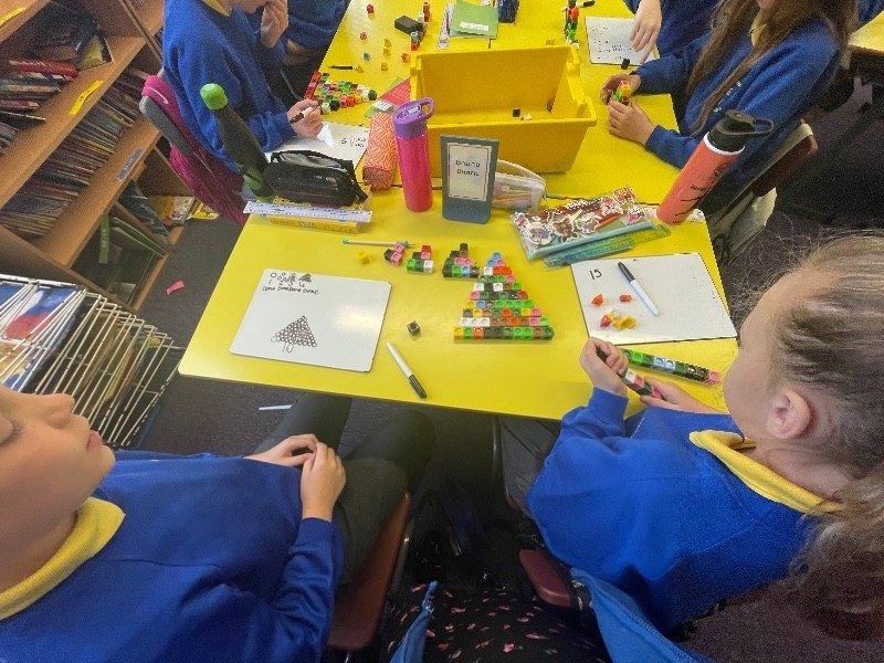 This week, P6 have been focusing on applying their ‘draw a picture’ problem solving strategy to investigate the pattern between triangular numbers! Pupils were given the first 3 triangular numbers and had to identify the pattern created. They then had to use this pattern to find out what the 10th and 20th triangular number would be and come up with a formula to demonstrate this. They used cubes to test their theories out and used triangular dot paper to write up their ideas.
