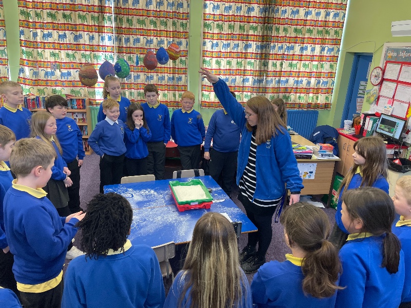 P6 completed an experiment to think about how the moon might have got it's craters! We came to the conclusion that it must be from asteroids crashing into the moon’s surface. We then thought about the effect that speed and size had on the size of the crater! We tested this out with different weights and dropped these from different heights. We predicted that the higher up the weight was dropped, the larger the crater would be! Some of us noticed that as the height the object was dropped, it increased in speed on its way down, making a larger impact zone - a larger crater! 🌓