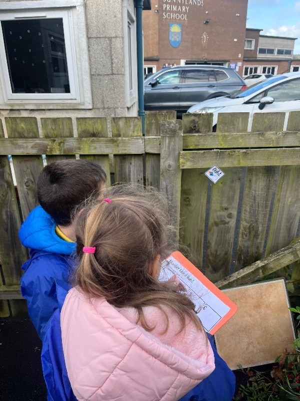 They started their day with play based learning, went on to practise their number words in a number hunt and finished up by using their revised sounds to record their findings.