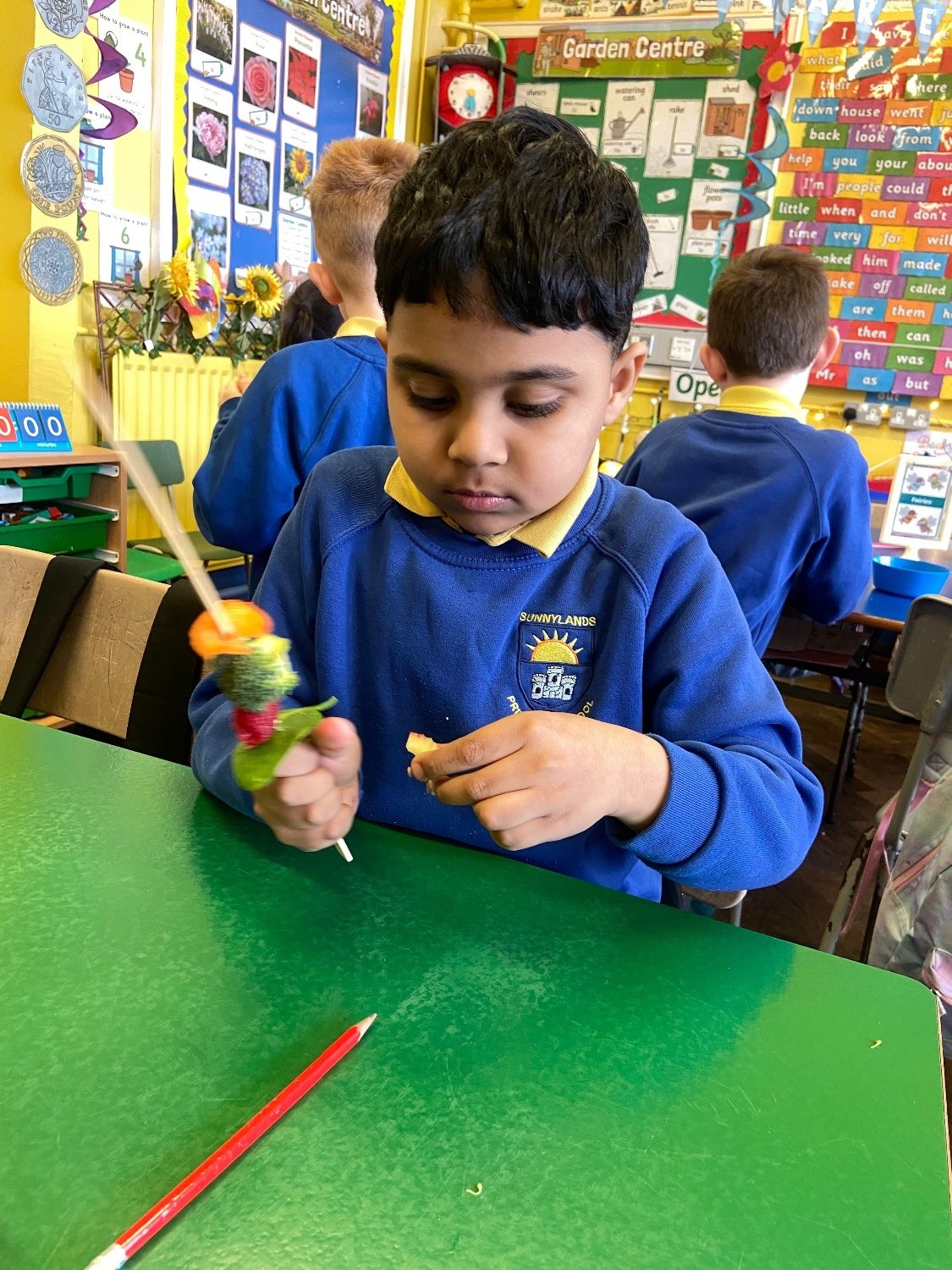 Finally, we made fruit and vegetable kebabs and tried all the different parts of a plant that you can eat!