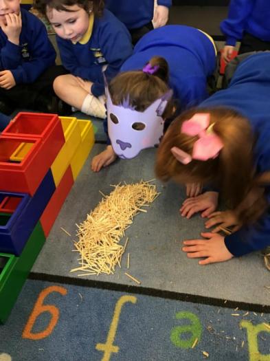 Since starting back after half term we have started a new topic all about Fairytales or Traditional Tales. This week and next week we are focusing on The Three Little Pigs and we have absolutely loved all of our piggy activities! We have worked hard in groups to build houses using different materials and then had to try our best to be a Big Bad Wolf and try and blow them over. We have been using piggies in our numeracy work, hiding them and then counting how many we can find as well as introducing our addition using our pig cuddly toys!
